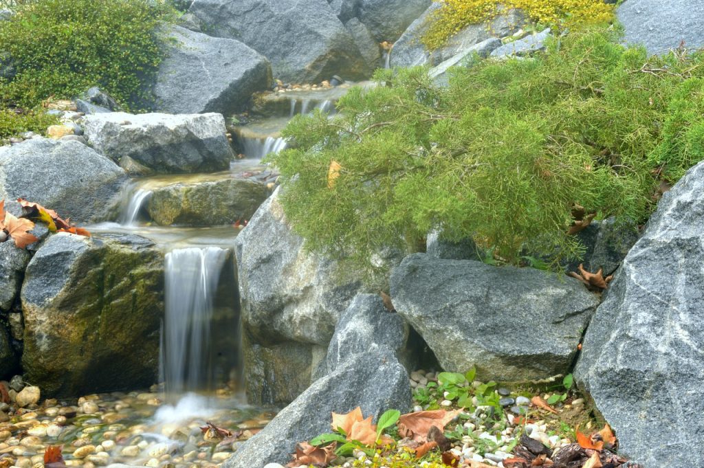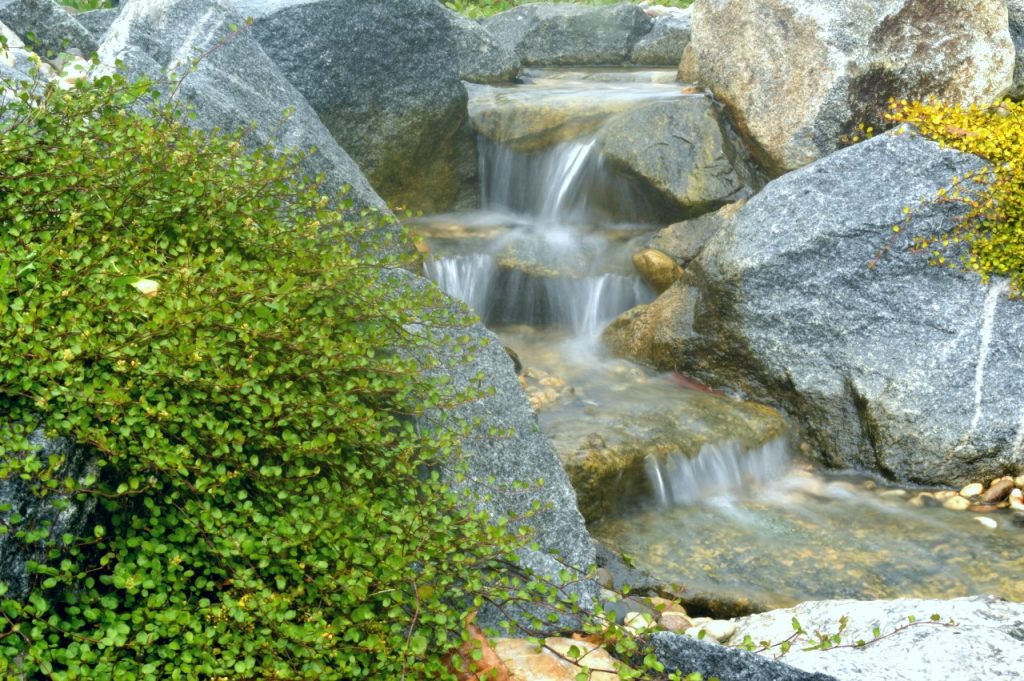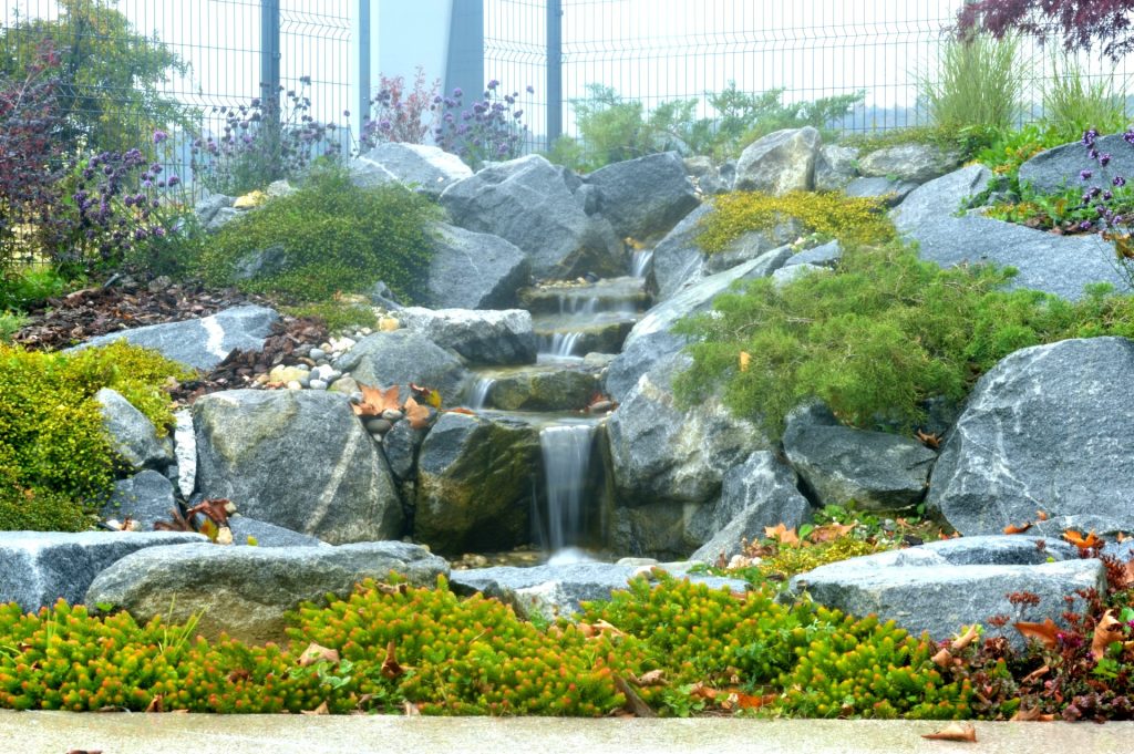Poleg gradnje slapov smo bili zadolženi tudi za zasaditev. Predvideli smo krasen miks okrasnih trajnic, ki so povdarile lepoto izbranega kamna.