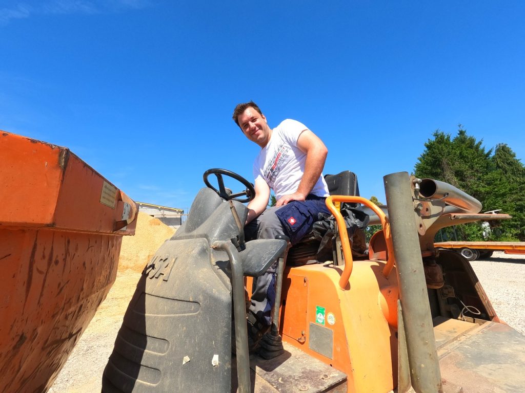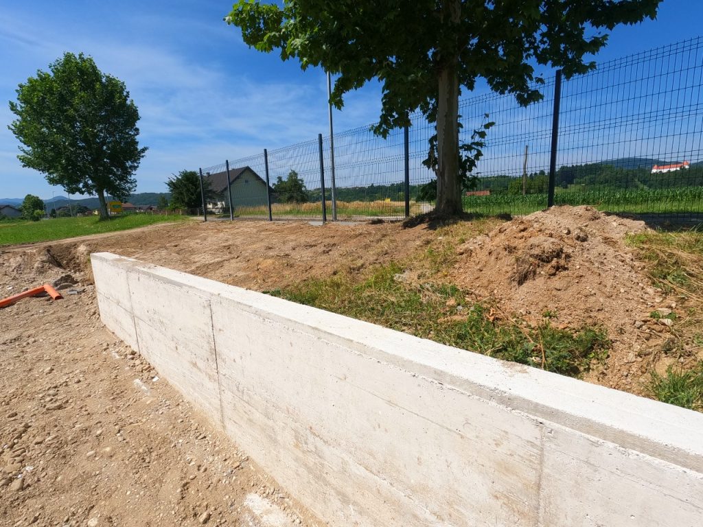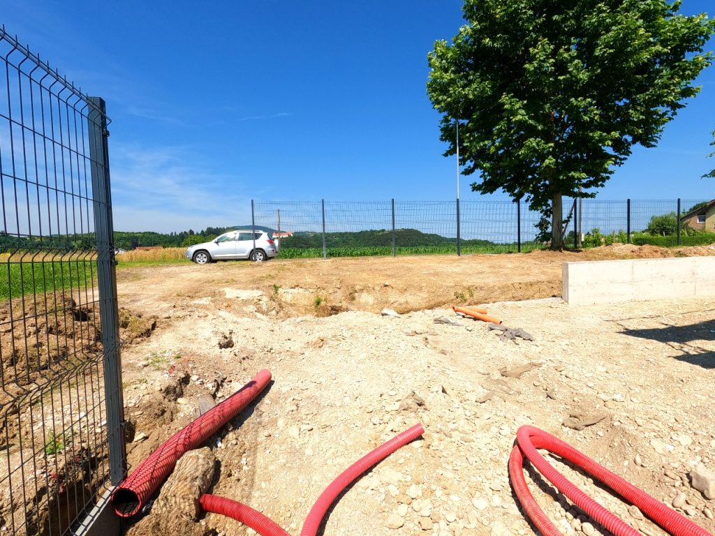 Za lokacijo vgradnje smo izbrali klančino v kotu posesti pred objektom, kjer je podjetje JB Energija predvidelo tudi teraso za poletna druženja in malice. Ob našem prihodu sta že stala osnova samega objekta ter del ograje, ki obkroža okolico zgradbe.